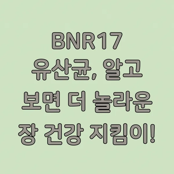- 개인차 존중하기: 사람마다 장 환경이 다르니, BNR17 유산균 섭취 후 느끼는 반응도 조금씩 다를 수 있다는 점을 기억해 주세요.