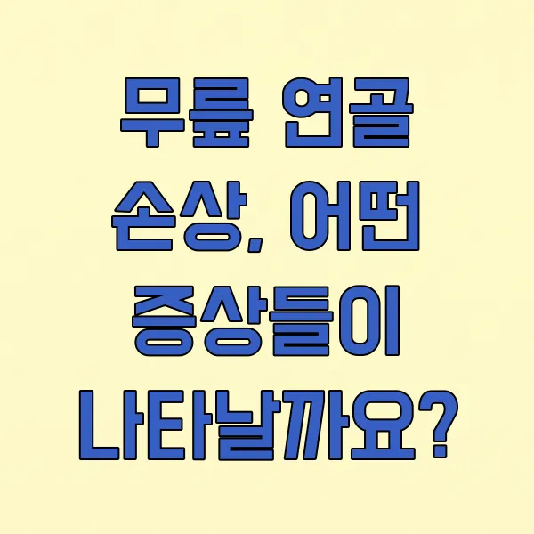 일상생활에서 갑자기 무릎 통증을 느끼거나 움직임이 불편해졌다면, 무릎 연골 손상을 의심해 볼 수 있어요. 통증, 붓기, 소리 등 다양한 증상을 통해 무릎 건강 상태를 점검하고 조기에 대처하는 것이 중요합니다. 무릎 연골 손상의 주요 증상들을 자세히 알아보고, 내 무릎 건강을 지키는 첫걸음을 함께 시작해 볼까요?
